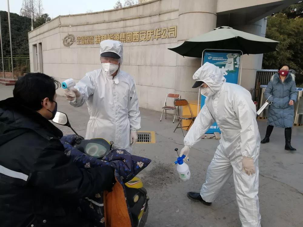 北化研究院集團瀘州北方公司建立了兩級值班聯(lián)絡(luò)機制,緊急采購口罩、消毒液、電子體溫測溫儀、消毒噴壺等防控物品,對出入人員進行體溫檢測,組織對各區(qū)域進行清潔消毒、通風(fēng)透氣。同時,為化工苑社區(qū)、臨江苑社區(qū)、瀘化醫(yī)院、羅漢街道辦提供酒精以助消毒。對堅守崗位員工實行集中送餐、分餐制或員工自行返家用餐,并利用公司微信公眾號、廣播等媒體加強防控措施宣傳和輿論引導(dǎo)。